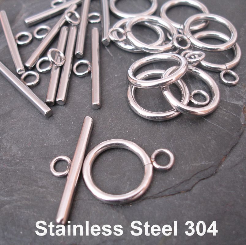 Americké zapínání z nereové oceli 304. Velikost kroužku cca 19x14x2mm, velikost tyčinky cca 24,5x7x2,5mm.