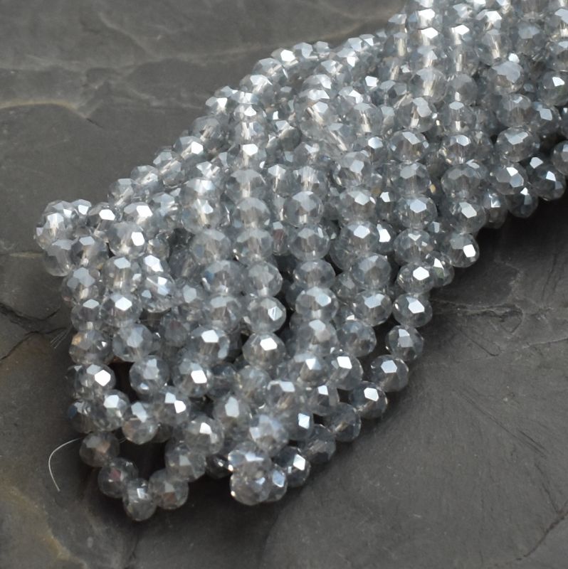 Broušený korálek rondelka 6x4 mm - světle šedý s listrem 20 ks