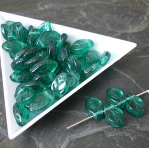 Lístky cca 12x7mm - zelené smaragdové - 20 ks