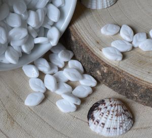 Skleněné lístečky cca 10x6mm - bílé - 30 ks
