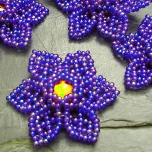 Šitá květinka cca 40mm - modrá duhová s červeným středem - 1 ...