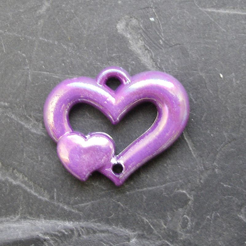 Plastový mezikus srdíčko 25x20mm - tm. fialový - 1 ks