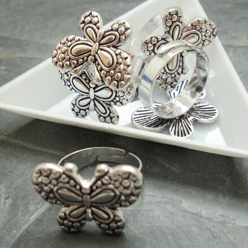 Prstýnek motýl cca 12 x 22 mm - starostříbrný - 1 ks