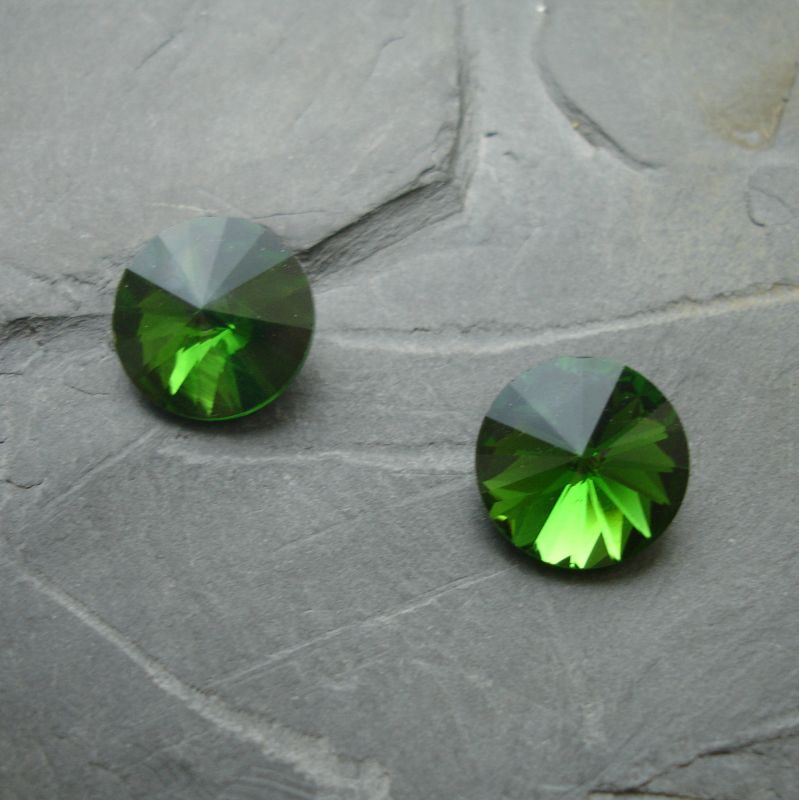 Skleněný broušený kamínek rivoli 12mm - barva zelená - 1 ks